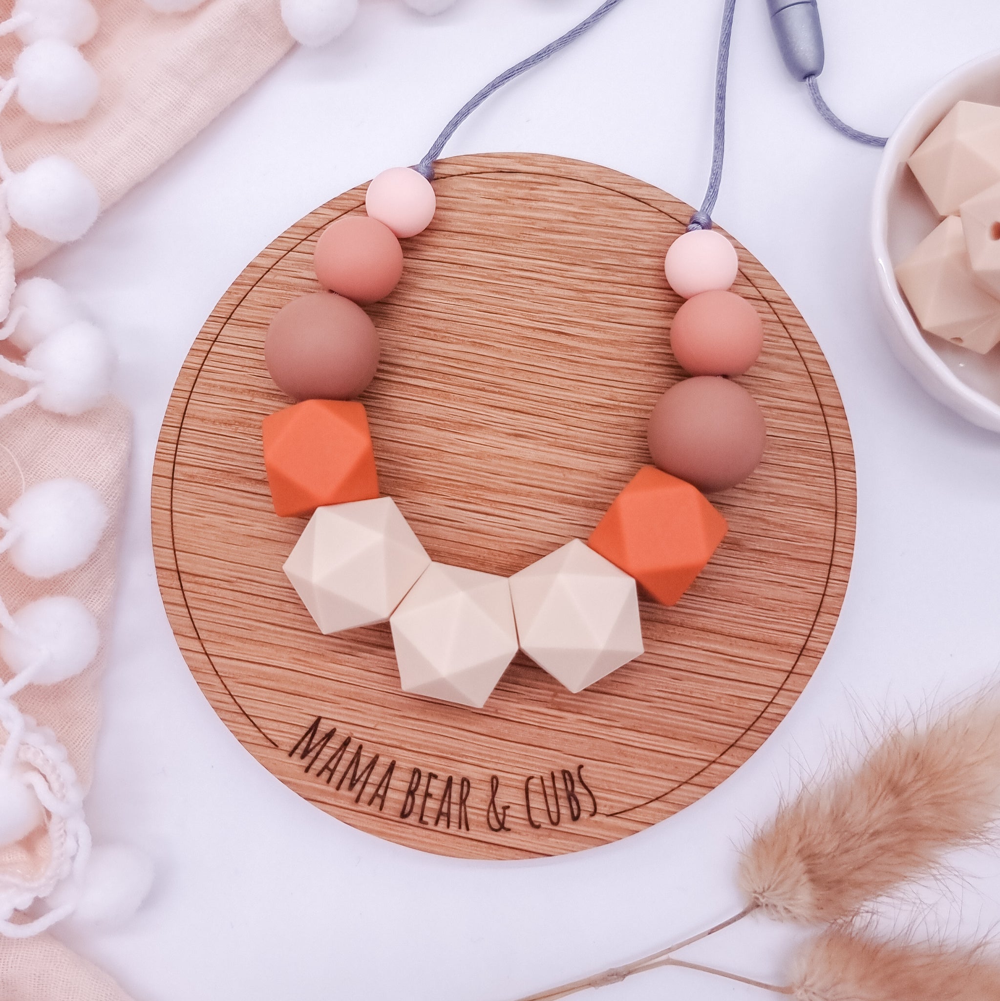 • Chewable, tactile silicone beads & interesting for baby, while stylish for mama to wear