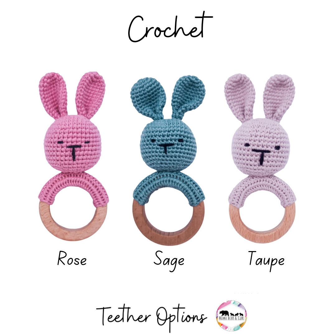 Our Bunny Teether is a combination of ideal textures for teething babies. You will also receive a baby tooth eruption chart which allows you to keep a record of when your babies teeth come through, as well as giving you a guide to what age you should expect certain teeth to erupt.