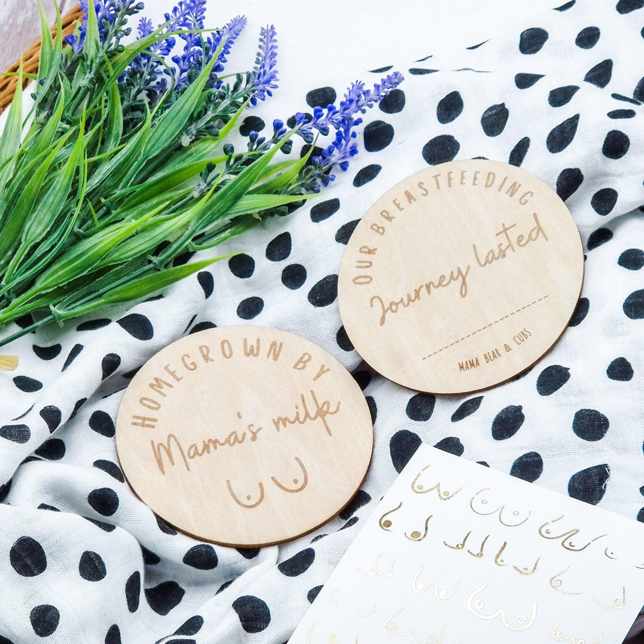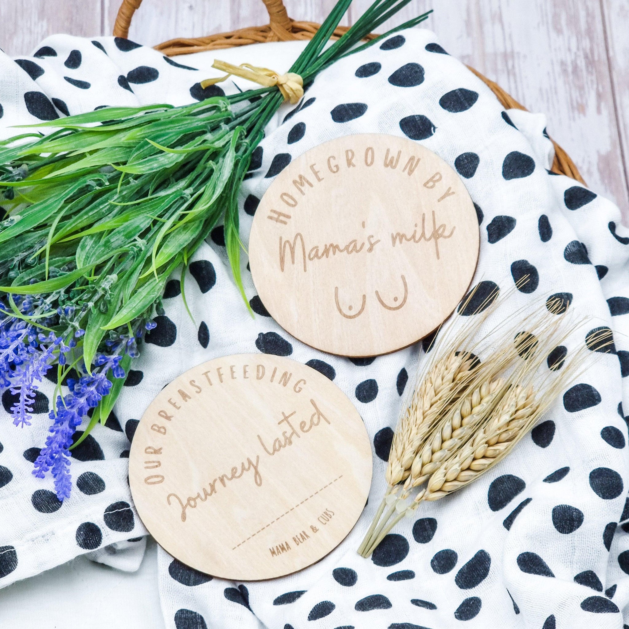 Our double sided beechwood milestone disc is a perfect way to honour your breastfeeding jouney. It's also a beautiful way to show your passion for supporting breastfeeding mothers.