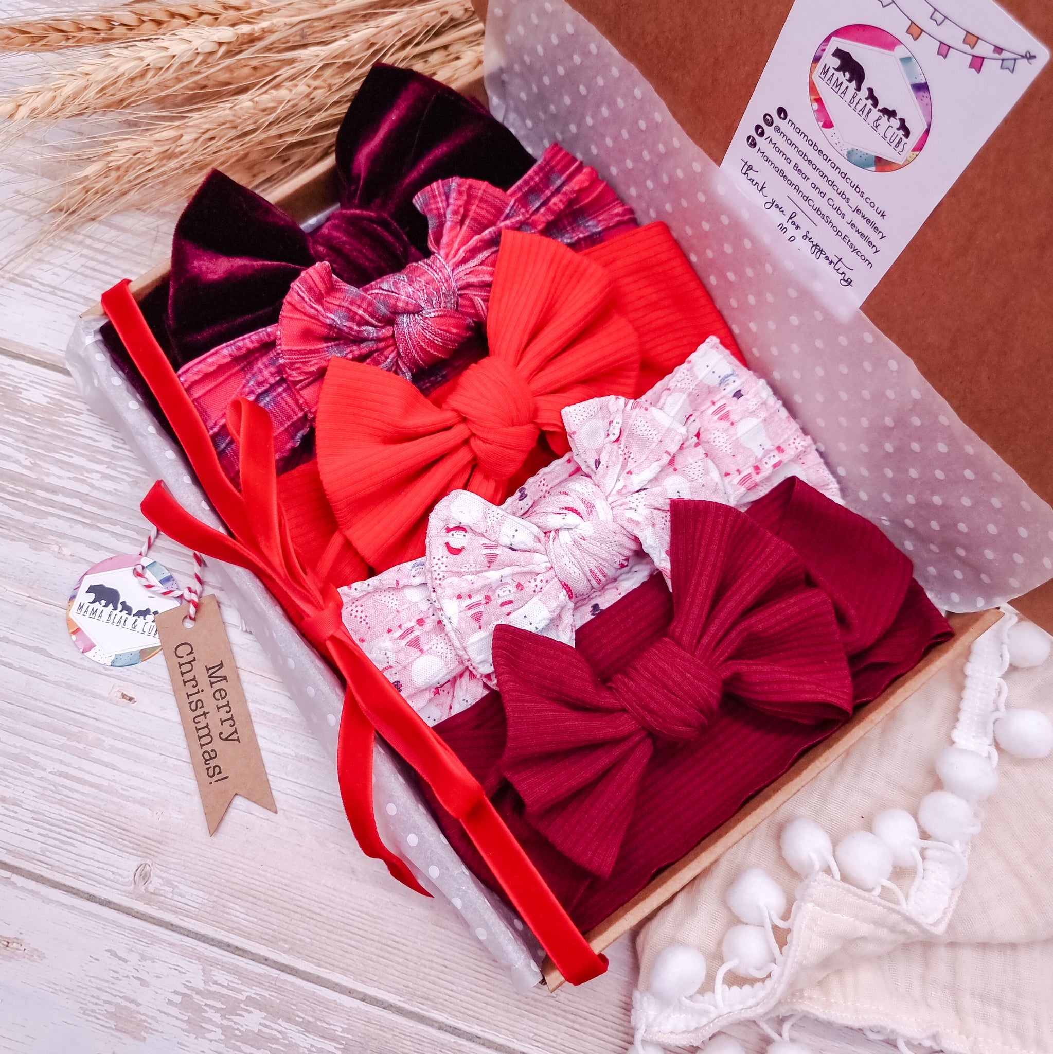 Christmas Bow Box of 5 fits 0-2 years - if you would like to create your own bundle or order more than 5 please see the pick n mix box option in our shop.