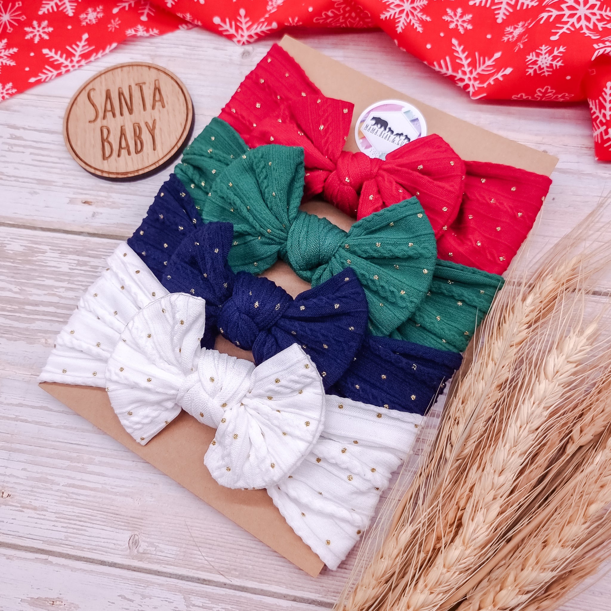Christmas Bow Box of 4 fits 0-4 years- if you would like to create your own bundle or order more than 4 please see the pick n mix box listing in our shop.