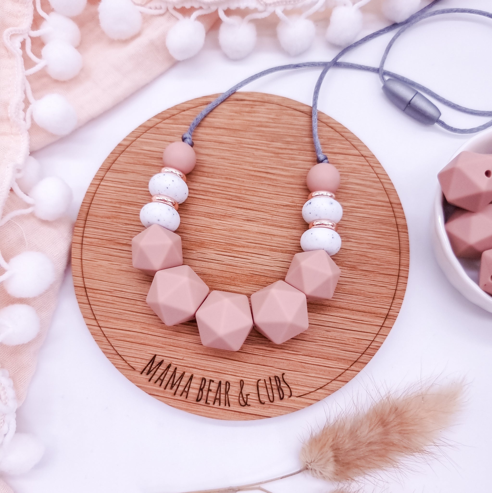 • Chewable, tactile silicone beads & interesting for baby, while stylish for mama to wear