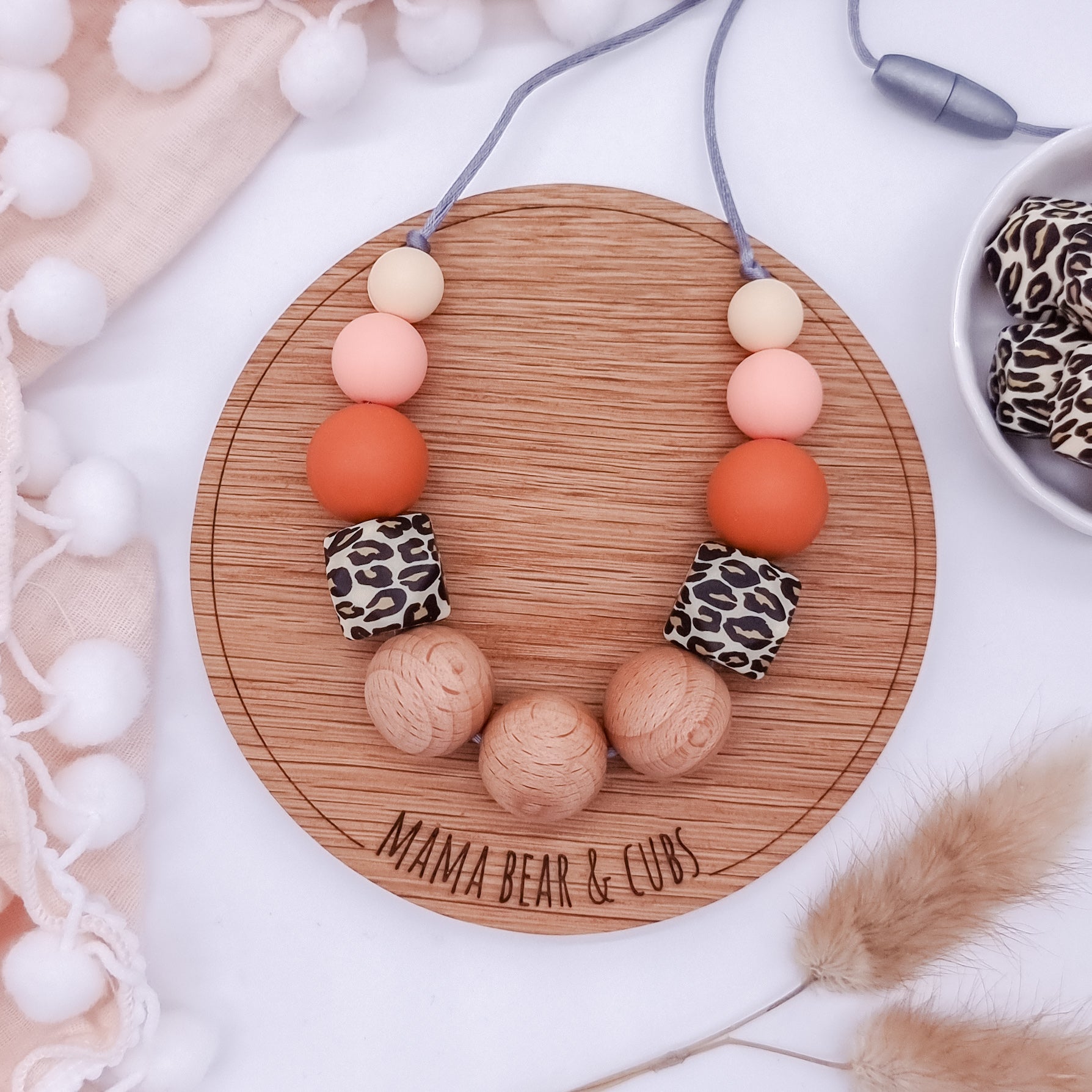 • Chewable, tactile silicone beads & interesting for baby, while stylish for mama to wear