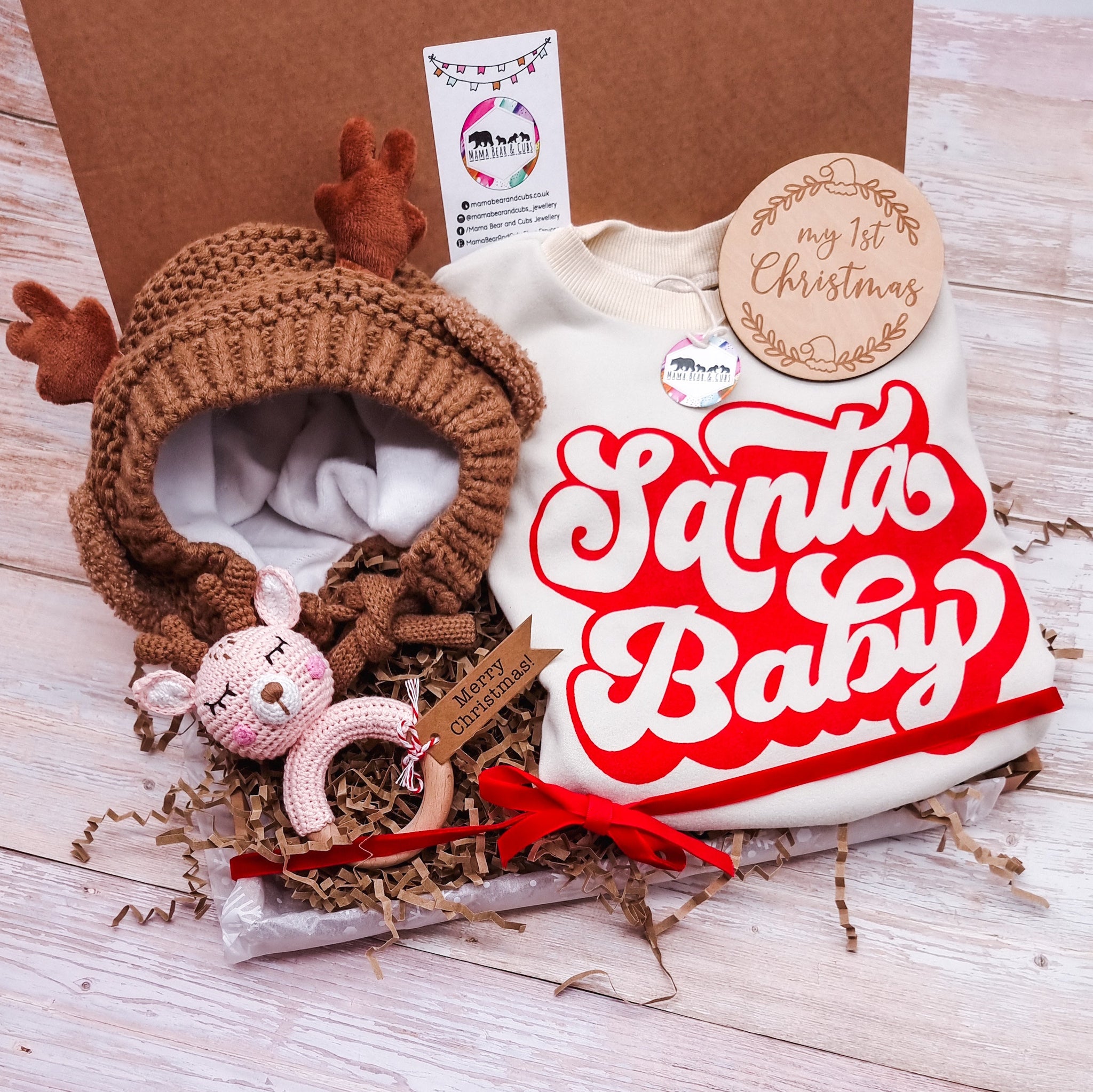 Celebrate the festive season with Mama Bear & Cubs Cream Santa Baby Romper. Designed for cosy wear, this romper features optional add on accessories to create the cutest Christmas outfit for your little one.